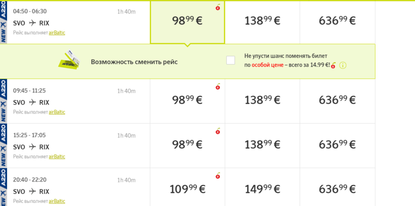Все они вылетают из аэропорта «Шереметьево», а в Риге приземляются через 1 час 40 минут.