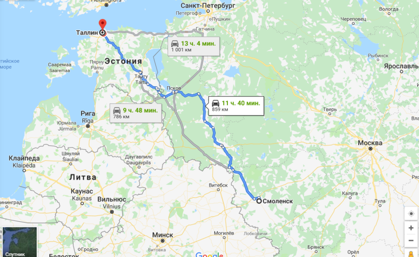 Смоленск — Таллин — маршрут на карте