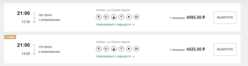 А вот такие рейсы у Lux Express.