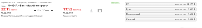 Тут также предстоит добраться сначала в Москву. А потом начинаются хорошие новости. Из Москвы в Таллин курсирует прямой рейс, поезд очень комфортабельный и классный, прям новехонький. Отправляется это чудо от Ленинградского вокзала в 22:15 вечера, вы будете ехать всю ночь, приедете в Таллин в 13:52. В пути поезд находится больше 15 часов.