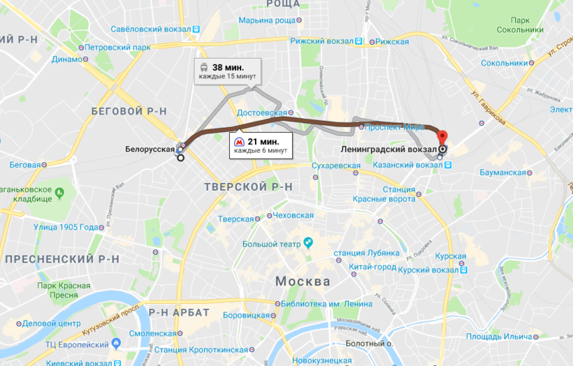 Кстати, от Белорусского вокзала, куда приезжает «Ласточка», на Ленинградский добраться будет очень легко. Нужно сесть на метро и проехать буквально 20 минут. Выходить нужно на станции «Комсомольская».