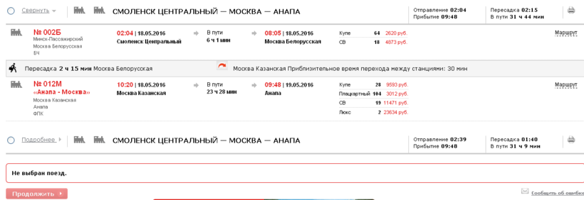В общей сложности в поезде Вы проведёте 32 часа, прямого маршрута нет, есть маршрут с пересадками. Билеты стоят по - разному, в среднем цена проезда на поезде из Смоленска в Анапу 10 000 рублей, это если ехать в купейном вагоне, плацкартный вагон должен стоить дешевле. Точную стоимость и расписание можно увидеть на скрине, но следует не забывать, что стоимость и расписание меняется в зависимости от дня недели. Чем раньше Вы купите билеты, тем дешевле он будет. Билет через переправу стоит 150 рублей. Билет на проезд из Керчи в Симферополь на автобусе стоит 120 рублей.