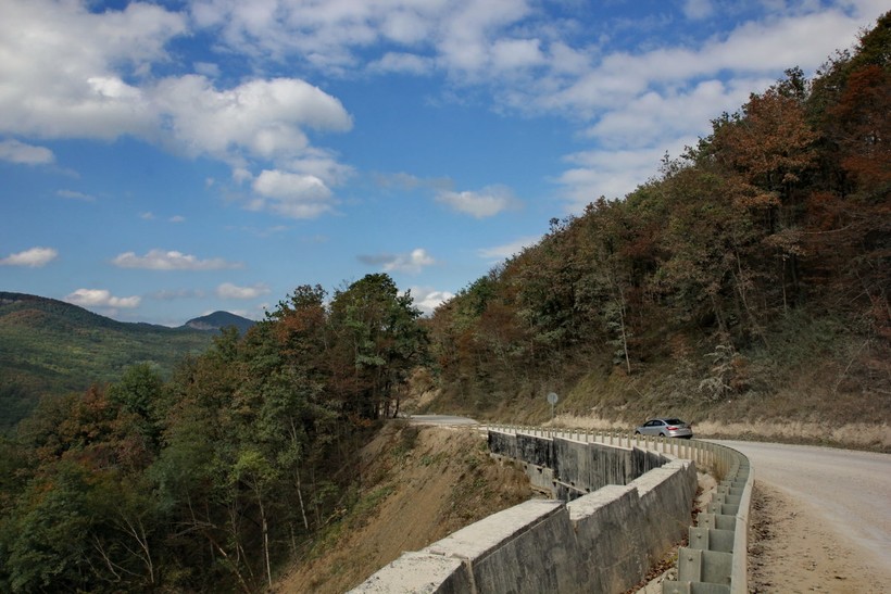 До Псебая ведет только одна асфальтированная трасса, в целом есть и другие дороги, по которым почти никто не едет, по крайней мере, из туристов, потому что они грунтовые, в плохую погоду есть риск застрять и идти пешком, так как даже эвакуатор сложно будет вызвать. Что касается трассы, то это будет Е97, которая проходит через Туапсе и Майкоп. Протяженность дороги 380 километров, доехать можно где-то за 8 часов. Между этими городами расположен Шаумянский перевал, который точно врежется вам в память, так как виды удивительно красивые, жаль, что на фото это в полной мере не видно.