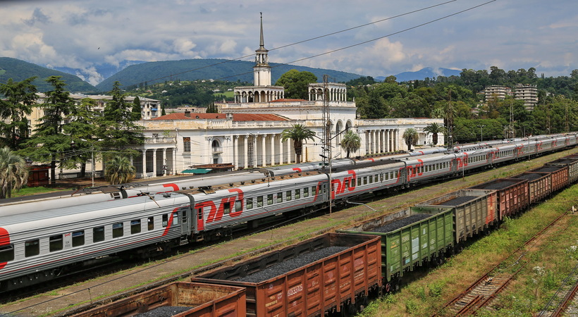 Прямого поезда в Абхазию нет. У вас есть два варианта, либо ехать на электропоезде до станции Кавказской (Кропоткин) и там сесть на поезд до Сухума, либо на автобусе или другом транспорте доехать до Армавира и там сесть на тот же поезд. Однако немного хочу вас огорчить, поезда в столицу Абхазии ходят в курортный сезон (весна - осень). Время маршрута Армавир - Сухум около 16 часов. Вся дополнительная информация здесь - http://www.rzd.ru.