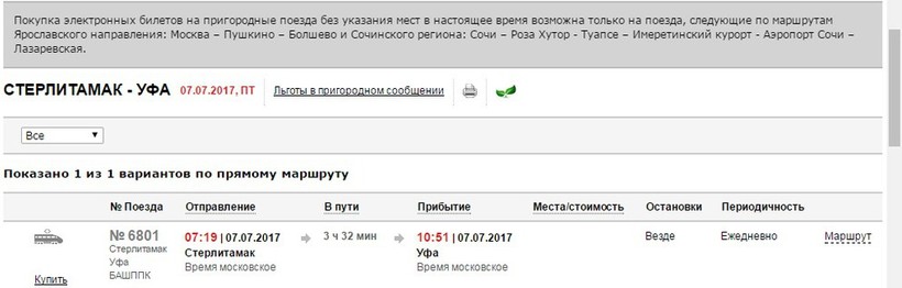 Вариант сложный из-за пересадок, но надежный, поэтому я его и рекомендую в качестве альтернативы, да и чтобы сэкономить. Сначала придется в Стерлитамаке сесть на электричку (время постоянно меняется), которая чаще всего уходит рано утром в 07:19 и за 3,5 часа доехать до железнодорожного вокзала Уфы.