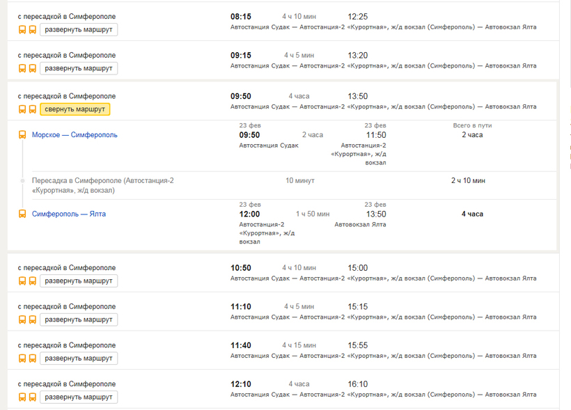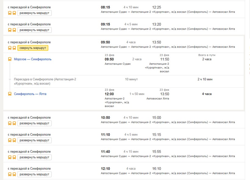 Ниже приведена информация о том, сколько часов вам потребуется, чтобы добраться от Судака до Массандры, а также приведена примерная стоимость проезда (средняя цена билета) на том или ином виде транспорта.