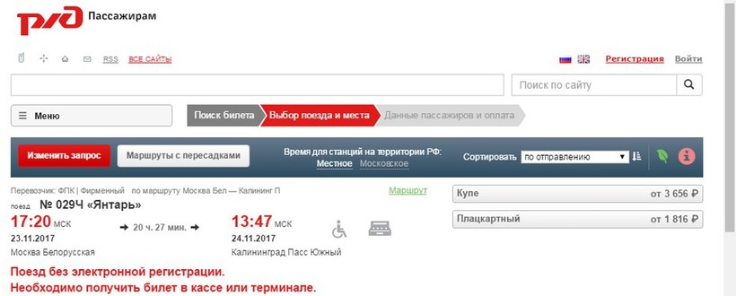 Если проездной до Москвы можно купить на портале РЖД, то до конечного пункта только в кассе вокзала или терминале, об этом даже указано на сайте, так что имейте в виду.