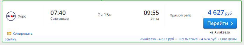 Вылет из Сыктывкара в 07:40, лететь нужно 2 часа 15 минут. В 09:55 вы будете в Инте.