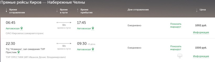 Автобус, хоть и является неудобным видом транспорта, это мое личное мнение, но вот на конкретном маршруте есть вполне приличные варианты. Правда, прямого сообщения нет, нужно будет делать пересадку в Кирове.