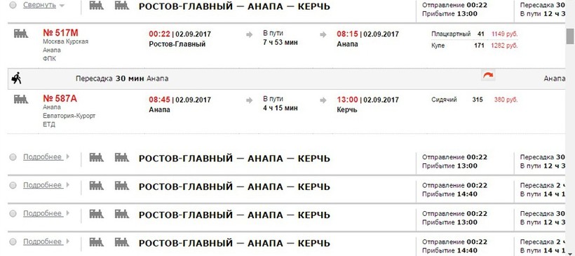 Надеюсь, что я вас удивлю, если скажу, что уже снова можно доехать на полуостров по рельсам? Вот сейчас, к примеру, можно легко добраться в Керчь, тем более что рейсы есть стабильно и ежедневно. Однако нужны будут пересадки. Сначала из Таганрога надо доехать до Ростова, затем можно сесть на поезд до Анапы, ходят в него рейсы с 00:22 до 23:28. Далее уже пересесть на следующий состав до Керчи (с 08:45 до 18:50). За 8 часов вы будете в Анапе, а еще за 4 с лишним в самой Керчи.