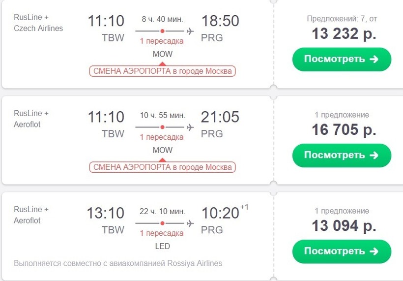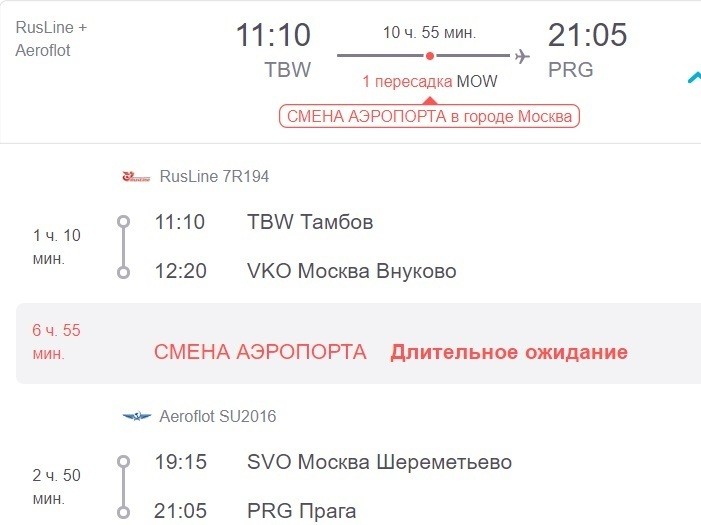 На дорогу потратите 11 часов. Рейсы выполняют RusLine и Aeroflot. Прилетите вы во Внуково, затем вам нужно будет доехать до Шереметьево, чтобы улететь в Прагу. Проще всего это сделать на такси. Между данными аэровокзалами 50 километров. Лучше вызывать такси, а не брать в аэропорту. Поездка вам обойдется примерно в 1100–1500 рублей.