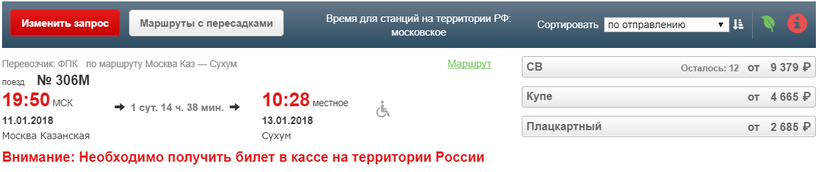 Со столичного Казанского вокзала по нечетным числам календаря в 8 часов вечера отправляется московский поезд, который находится в пути сутки с небольшим. Таким образом, в абхазскую столицу вы прибудете в 10 часов утра следующего дня.