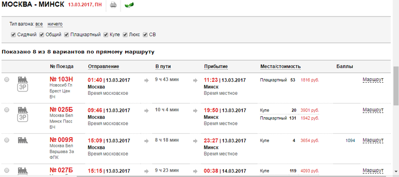 - До Минска билет можно купить за 1800 рублей, а вот до Варшавы не менее чем за 3000 (плацкарт).