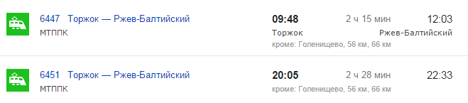 Хотя Ржев находится на пересечении важных железнодорожных путей, из Твери на поезде туда маршрут не предусмотрен, только с пересадкой, лучше всего сделать ее в Торжке, это самый быстрый вариант. Поскольку электрички из Торжка отправляются в Ржев дважды в день до 20 часов 05 минут, что видно в таблице ниже, нас интересует транспорт, прибывающий до этого времени.