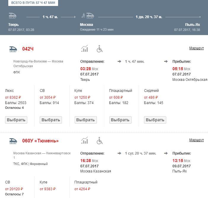 - Москва — Пыть-Ях будет от 4000 рублей плацкарт, до 9000-13000 рублей — купе.