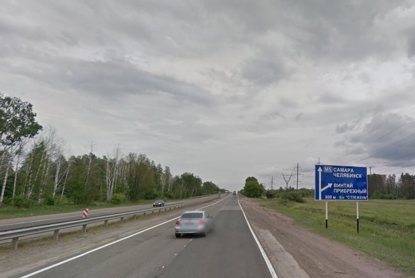 Вот закончился город, дорожное покрытие пока прекрасное. Правда, трасса загружена круглосуточно. Множество встречающихся развязок следует проходить без отклонений. Вот М5 близ поселения Винтай: