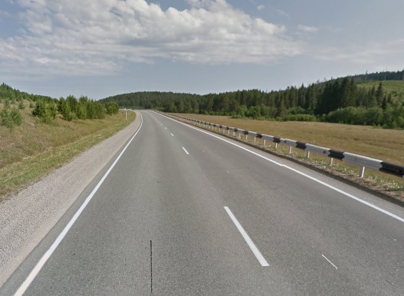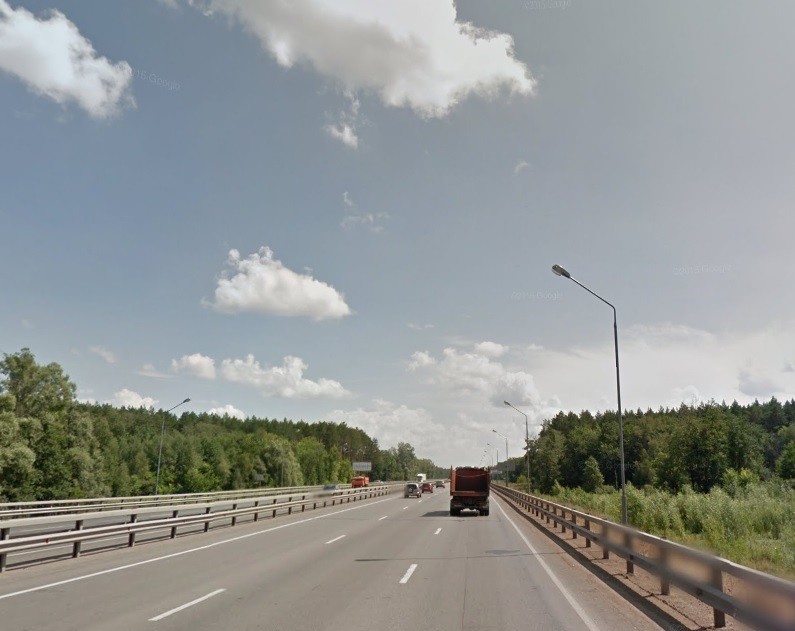 Вот трасса под Уфой: опять разделение полос, прекрасный асфальт, опоры освещения.