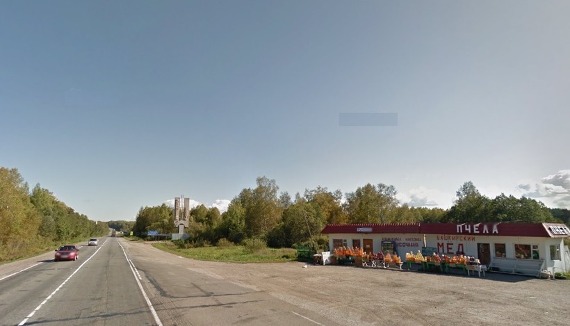 Вот «приграничная» пчелка, торгующая башкирским медом. Продукт, замечу, замечательный – характерный букет, смесь горьковатого со сладким. Впереди горные дороги Башкирии, поселения Малояз, Еланлино, Теплый Ключ, Новобелокатай. Вот стык со Свердловской областью.