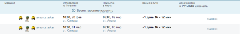 Ниже приведена информация о том, сколько часов вам потребуется, чтобы добраться от Тольятти до Ялты, а также приведена примерная стоимость проезда (средняя цена билета) на том или ином виде транспорта.