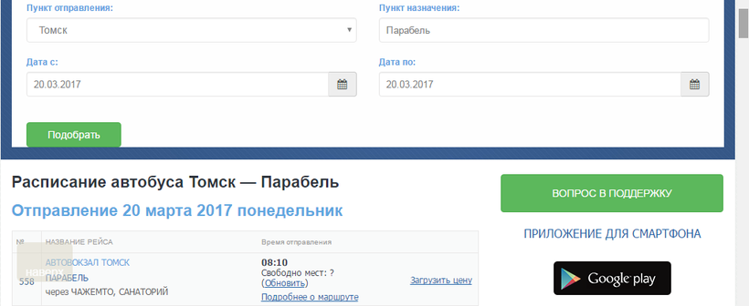 Во-первых, рейсы есть не ежедневно, к примеру, в этом месяце автобусы ходят с 8 по 23 марта. Однако здесь есть еще небольшая заковырка, так как иногда рейсы есть дважды в день, а иногда всего лишь раз. В качестве примера можно посмотреть расписание на 20 число, чтобы убедиться в моих словах. По скриншоту видно, что будет только дневной автобус в 08:10, а иногда он ходит в 14:50.