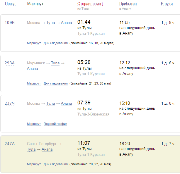 - стоимость билета на поезд из Тулы до Анапы — от 2986 рублей (плацкарт) до 5196 рублей (купе);
