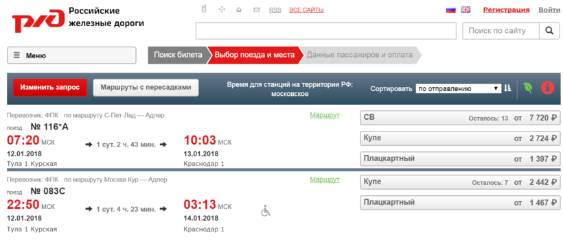 Плацкартные вагоны есть во всех составах, а вот наличие купе и вагонов класса «люкс» надо уточнять.