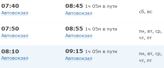 Первый автобус в будний день отправляется в 7-50. Дальше автобусы ходить не перестают до 20-10.