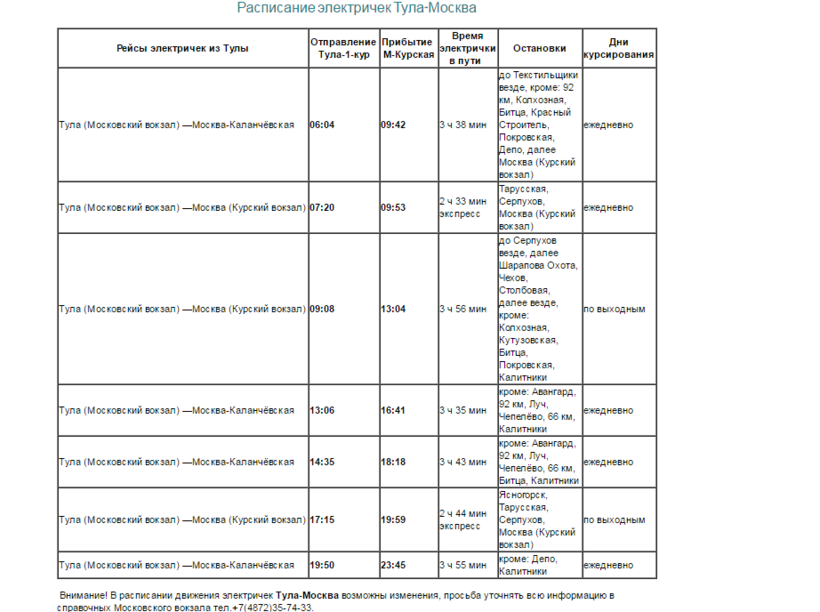 Приобрести билеты можно заранее в предварительных кассах Московского вокзала Тулы. Сделать это можно не ранее чем за 60 дней до отправления. Или воспользоваться услугами официального сайта РЖД.