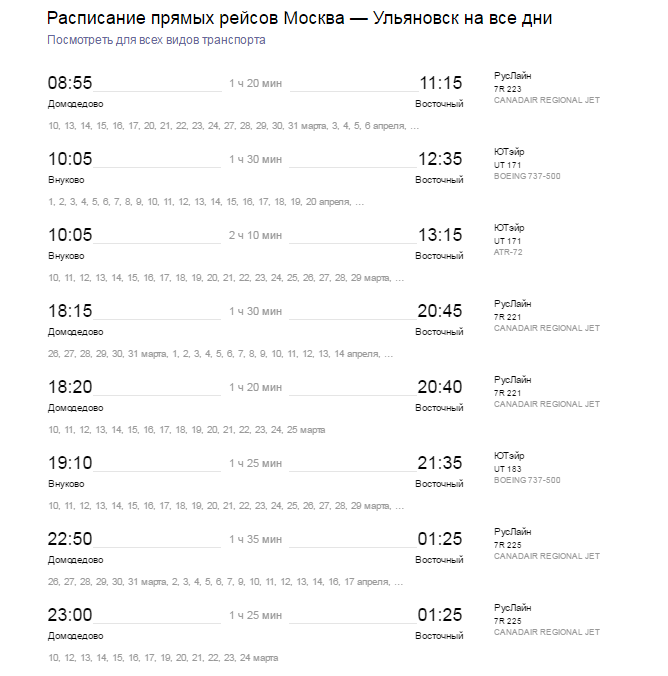 В расписании авиарейсов до Ульяновска возможны изменения и перед заказом билетов требует уточнения.