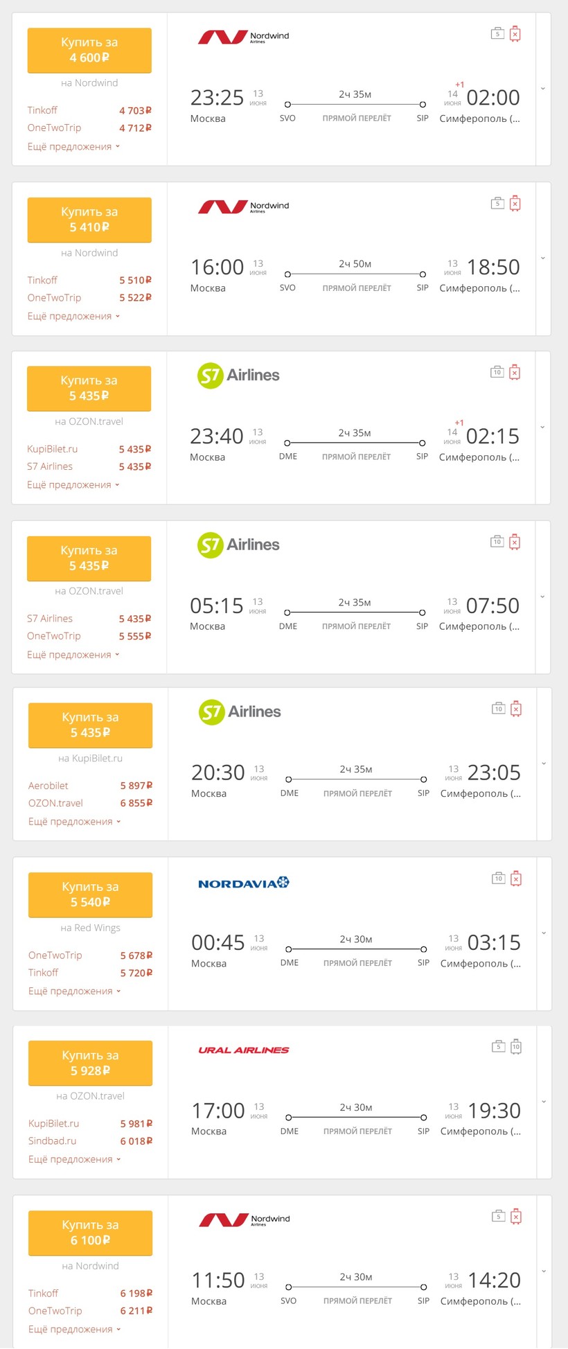 Я бы рекомендовал лететь самолетом «Уральских авиалиний», он вылетает из Домодедово в 17:00, а садится в Симферополе в 19:00. Время перелета составит 2 часа 30 минут.