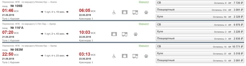 Мне больше всего нравится вариант с отправлением в районе семи утра со станции Тула-1 Курская, а прибытие в десять утра на станцию Краснодар-1. В дороге поезд находится чуть больше суток. Возле вокзала уже ждут автобусы для владельцев единого билета.