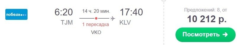 Прямые рейсы из Тюмени в Карловы Вары не осуществляются, необходимо лететь с пересадкой. Оптимальнее всего ее сделать именно в столице нашей Родины — Москве, вот один из вариантов.
