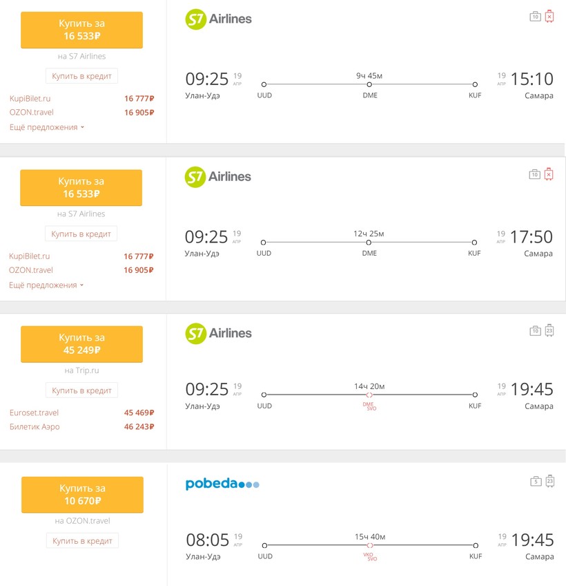 Ниже приведена информация о том, сколько часов вам потребуется, чтобы добраться от Улан-Удэ до Самары, а также приведена примерная стоимость проезда (средняя цена билета) на том или ином виде транспорта.