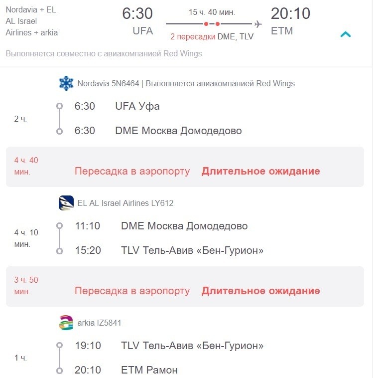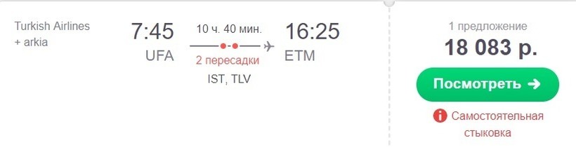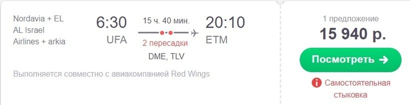 Также вы можете полететь через Москву и Тель-Авив. Вот этот вариант.
