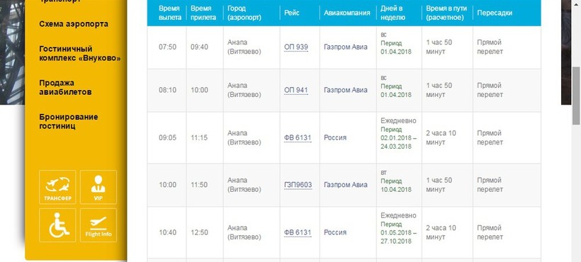 Глянув расписание, можно убедиться, что рейсы во Внуково есть не так уж часто, и всегда в 19:50.