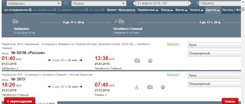 Вместо столицы я выбрала Челябинск и не ошиблась. До пункта пересадки дорога заняла 4 дня 12 часов. Последующие рейсы идут уже в столицу, но с остановкой на железнодорожном вокзале «Рязань-1».