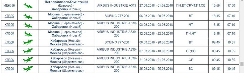 Вылеты всегда в 09:45, самолет поднимается в небо по средам и воскресеньям. В столицу судно компании «Аэрофлот» прибывает спустя 7,5 часов.