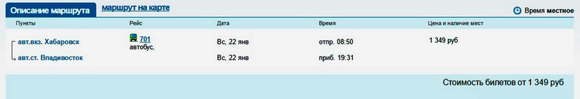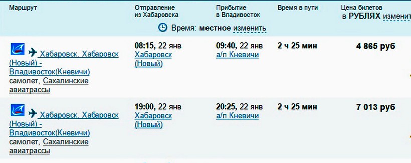 Напрямую такого рейса нет. Но авиакомпания Сахалинские авиатрассы дважды в день совершает беспересадочные полеты Хабаровск-Владивосток. Борт взлетает в 8:15 и в 19:00, в воздухе 2,5 часа. От аэропорта Кневичи Владивостока до автовокзала добираемся маршруткой № 101 или электропоездом.