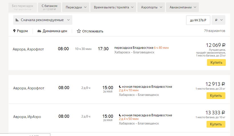 Билет можно приобрести в кассе аэропорта или онлайн. Можете посмотреть рейсы и стоимость здесь, также можно глянуть Хабаровские авиалинии, ИрАэро, Аврора, Аэрофлот.