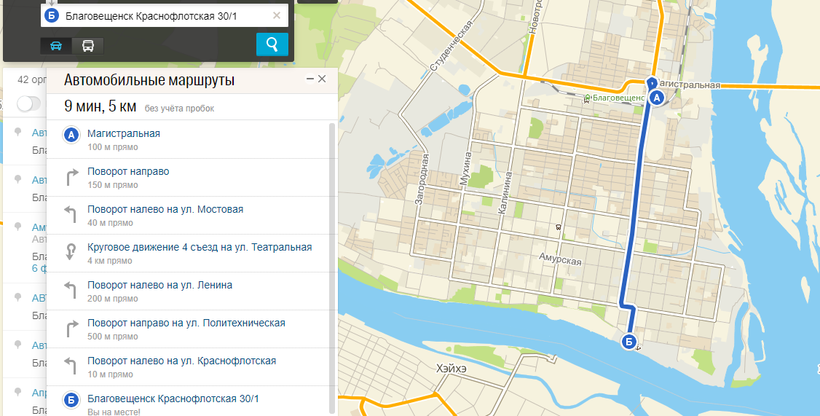Приехав в Благовещенск, машину придется оставить на стоянке, она есть на речном вокзале, специально никуда ехать не надо. Стоимость - от 200 рублей в сутки. Я на карте отметила дорогу после въезда в город.