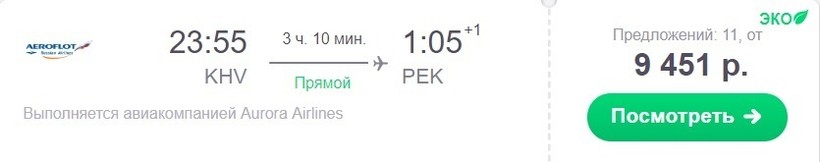 Прямые рейсы из Хабаровска в Пекин осуществляются только по средам и воскресеньям. Вылет ночью. Гражданские перевозки по данному маршруту осуществляет компания Aeroflot совместно с Aurora Airlines.