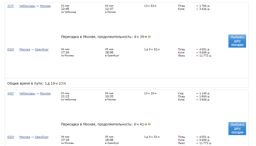 Можно из Чебоксар выехать в Москву, а там пересесть на поезд 32У «Москва-Оренбург». Дорога займет немало времени: почти 14 часов до Москвы и потом сутки до Оренбурга.