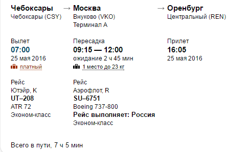 В обоих городах есть обустроенные аэропорты, поэтому добраться из Чебоксар в Оренбург можно и самолетом. К сожалению, прямого маршрута нет, в любом случае придется делать пересадку в московском «Внуково». Наиболее быстрый вариант предлагает авиакомпания «ЮТэйр». Вылет из Чебоксар в 07:00, в 09:00 вы будете в Москве. В аэропорту нужно будет провести почти 3 часа. В 16:05 вы будете в Оренбурге.