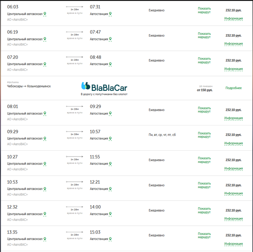 - Автобус Чебоксары - Козьмодемьянск - 232 рубля.