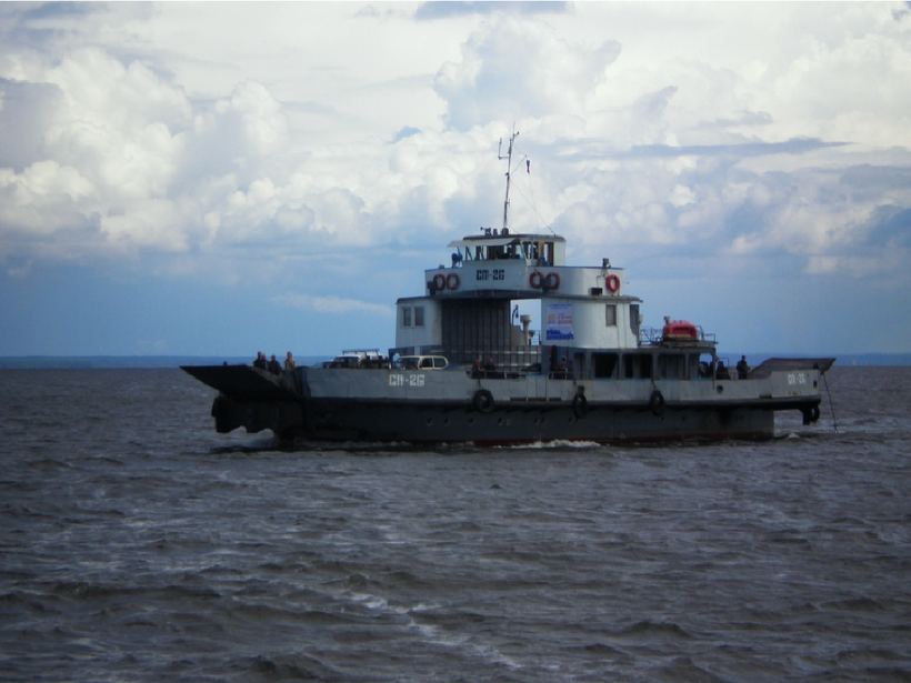 1) Мой вариант. Выезжаем с Контура и двигаемся по Ядринскому шоссе (которое потом перейдет в трассу М7) в сторону Нижнего, через 20 км, на развязке поворачиваем на право и едем в Козьмодемьянск. В Козьмодемьянске (при желании в городе можно остановиться и посмотреть достопримечательности, а там они довольно интересные) объезжаем центр города по улице Промышленной (чтобы доехать быстрее) и подъезжаем к паромной переправе. Паромы ходят с интервалом в час до деревни Коротни на другом берегу Волги, вместимость парома - 12 машин.