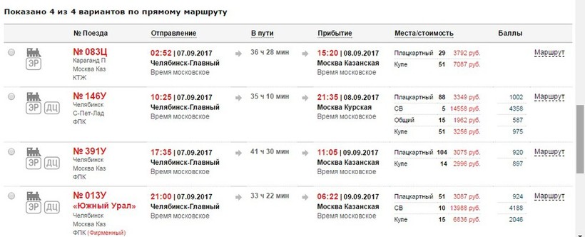 Конечно же, не ежедневно бывает по 4 поезда, иногда меньше, иногда больше, так что это уже можно уточнить на самом вокзале еще до того, как вы купите билет. Фирменные составы по этому направлению можно встретить нечасто, но все же при большом желании можно попасть на «Южный Урал», который сочетает в себе хороший сервис и быстрое время в пути. Если этот состав доставит на Казанский вокзал через 1 день 10 часов, то другие лишь через 1 день 18 часов. В общем, здесь надо либо подстраиваться под дату, либо просто терпеть лишние часы в дороге, что не смертельно.