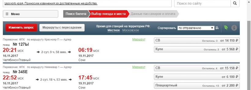 Ехать поездом долго, но, по крайней мере, вам не придется ломать голову о пересадках. Доехать можно прямиком до Адлера, а дальше маршрут на автобусе как я описывала выше. От челябинского железнодорожного вокзала почти ежедневно отправляются составы в Сочи. Можно сесть на поезд Красноярск — Адлер, который уходит в 20:21 или Нижневартовск — Адлер, отправка которого в 22:52. Советую выбирать первый вариант, потому что дорога тогда займет лишь 2 дня 10 часов, конечно же, можно и вторым составом, но это на 10 часов дольше.