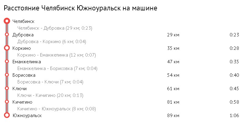 Расстояние от Челябинска до Южноуральска