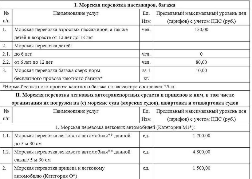 Стоимость поездки сложится для вас из цены бензина (это примерно 1700-1800 рублей) и из стоимости билетов на переправу (здесь ориентируйтесь из цен на скрине).