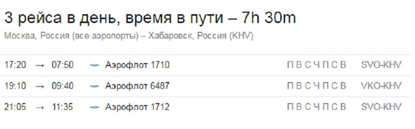 Лучше всего вылетать рейсом в 19:10, а садиться в 09:40 в Хабаровске.